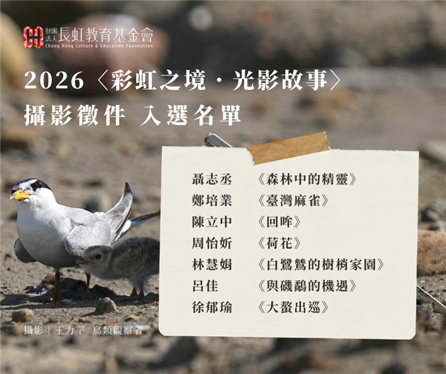 基金會秉持著分享與傳承美善的信念,盼與大眾一起發現環境之美。感謝響應2026第一屆〈彩虹之境.光影故事〉攝影徵件的創作者,本屆我們收到許多精彩,讓我們看見台灣生態的多元樣貌。