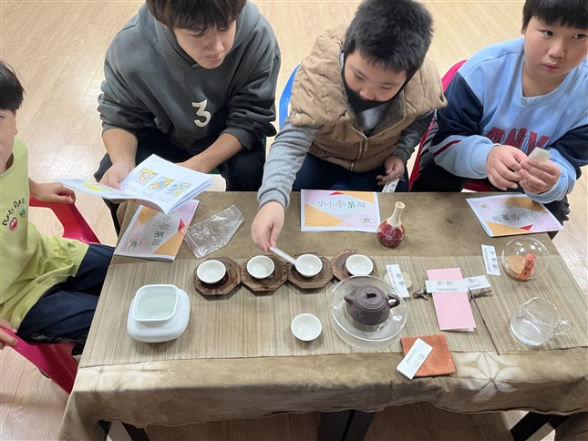 文 / 基金會副組長 林姵君 圖 / 基金會「感謝台灣這土地,讓我平安快樂真美麗!」(Kám-siā Tâi-uân tsit kuè thóo-tē, hōo guá pîng-an khuài-lo̍k, tsin bí-lē!) 融合多元族群的台灣,宗教信仰自由且極具包容力,除了最大宗的民俗信仰,也經常可見體系多元的教會,透過關懷、分享資源、社會服務及教育,來投入社區營造,瞭解並滿足鄰近住民的需求,帶來希望與支持力量,成為社區的守望者與服務者。 其中,教會與社區的最珍貴的關係就在於陪伴與認同。對基金會而言,我們同樣也期望以「茶」讓孩子找到內心安放之所,並能夠多多傳遞奉茶感恩心的意義,除了長年合作的萬華兒童服務中心以外,也積極尋找合適的公益機構來辦理茶公益營隊,我們從去年參與過《建築好好玩》到你家工作坊的團體中,延續與貴格會海山教會附設〈社團法人中華民國愛與希望協會〉的緣分,希望能透過台灣茶來認識我們所居住的、豐饒的台灣,也經由茶會多樣的面貌與美感,滋養孩子們的生活日常。▼認識不同的茶器具▼配合年節氣氛,寫小春聯字靜心▼學習辨識碧螺春、包種茶、紅茶 結業茶席上,協會的老師告訴我們,其實不只是這裡的孩子,連她身為年長者,都未曾有機會這樣好好地坐下來,品嚐一杯透過精緻的茶道儀軌所奉上的茶。這次參與茶冬令營的孩子,年齡橫跨國小3年級到國中3年級,大家在茶文化面前都是第一次體驗的新手,在有限的四堂課中,一起學習茶的基礎知識:認識茶器具、台灣的茶產地、寫小春聯的靜心活動,以及孩子們最期待的品茗及泡茶體驗,還有整個營隊的重頭戲—一起籌備結業茶會。 營隊期間我們觀察到社服孩子們出色的活動力、自制力,以及互助、傳承的美德。協會的老師與志工用心爭取資源,讓孩子們在協會一起吃飯、寫作業、遊戲,除了進行社區弱勢家庭兒童陪讀,也關懷社區長者並提供日間照顧。其中讓我們最驚訝的是孩子們的超快速反應力,既能把握短暫的下課時間玩樂,又能瞬間切換回座位、進入上課狀態。父母不在身邊的這段共學時光,孩子們得以在安全的團體中彼此依靠,年長的大哥哥大姊姊學習領導較年幼的孩子,成為師長們得力的小幫手,而團體生活中避免不了的摩擦與困境,更是高年級生們培養解決問題的「實戰演練」。▼泡茶的練習彩排▼練習向客人說明茶席 在最後一天的結業茶席前,就出現了一段讓人難忘的插曲,一位年紀較小的孩子,三天的茶課過程中都頻頻喊燙、喊苦,有時候還嚷嚷著拒絕喝茶,但在課堂中玩得開心、也沒有明顯的不滿或抗拒,甚至在各組分配茶會工作崗位時,自告奮勇要擔任最主要的小茶人,結果卻在練習時太過興奮,一時忘了規矩禮儀而被老師請到一旁規勸,因而鬧起脾氣拒絕參與正式彩排,錯過原本能擔任茶主人的機會!他氣呼呼地站在一旁看著同學如期進行彩排,大家在泡茶時有說有笑、虛心接受老師的細節指導,竟然紅了眼眶,默默躲到牆角,拒絕其他同學的關心。 正當我們有點擔心他的情緒在正式茶會前是否能緩和下來時,同桌的組長大哥哥早就細心地觀察到他的所有表情,趁著大家繼續下一組茶席的彩排時,走過去悄悄地對他說:「等等你先去當茶侶,中間可以交換當茶人,但是你要答應守規矩。」孩子破涕為笑,立刻收拾好情緒,開心地坐上茶席,也比之前多了一分謹慎穩重。這讓我們看見混齡學習的價值,年紀稍長的孩子,多了一份觀察與成熟,更懂得如何照顧他人;而年紀較小的孩子,則在被理解與陪伴中,重新找回勇氣。這個微小的瞬間,高年級生的高情商表現及展現出的互信關懷,年幼的孩子在理解與包容中重獲機會,並有了顯著的成長,最後大家一起開心圓滿地完成這人生第一次的茶會展演,至今回想起來仍令人動容。▼為客人泡茶及送點心 愛與希望協會正如其名,以愛為出發點,關懷貧困弱勢家庭,以福音陪伴走出狹隘心靈,倡導正確的人生觀並提升生活品質。這也與在基金會的茶課中必不能少的〈感謝歌〉相得益彰,我們帶領部分不熟悉台語的孩童們一起讀出對父母、師長、同儕以及天地土地的感恩心,孩子們甚至從第三天開始就已不需要老師引導與字幕,能獨立自然地唸完整首〈感謝歌〉!而協會的師長,也會在感謝歌之後帶領大家一起低頭禱告:「讓我們閉起眼睛、合起雙手,親愛的天父上帝,我們獻上感恩,感謝祢如此眷愛我們的孩子,因為有天父上帝的愛,也讓我們有能力、有智慧地來愛這群孩子,我們更看見祢為孩子們帶來許多資源,讓他們有機會在各方面多多學習,我們看見這麼多的恩典在這個地方,更知道他們是蒙愛的。也祝福長虹教育基金會,讓這些付出為他們恩上加恩、利上加利,得以服務更多有需要的孩子們。謝謝恩主,並祝福在座的每一位。禱告奉耶穌盛名,Amen。」深感這場茶公益冬令營,孩子們用自己的方式互相學習、扶持,展現出對茶文化的熱誠,讓茶席不只有茶香,也傳遞信任和成長的力量,在充滿愛與希望的祝福下,增添成長過程中一幀幀美麗的回憶。