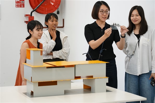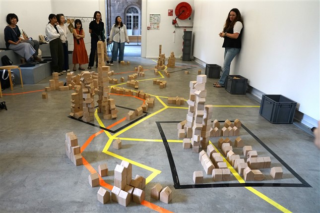 2025.10文/長虹教育基金會秘書長 吳台琪圖/基金會、臺灣博物館文教基金會、台灣現代建築學會、楊駿、劉惠芳、林瑋婷▼波爾多的皮埃爾橋,是加龍河上第一座橋 波爾多因加龍河流過此地的形狀像一眉彎月,又稱為月亮港,隨著港口而繁榮,2007年波爾多市中心老城區登錄為世界文化遺產。除了是葡萄酒知名產區、可麗露的故鄉外,事實上,這個位於法國西南部的小鎮,在建築教育及展覽,更有著國際知名的「波爾多建築中心」。 2025年7月初,基金會參與了臺灣博物館文教基金會主辦的「主題式國際博物館專業提升訓練計畫」,首次主題「兒童建築教育及策展」正是長虹教育基金會一直在做的核心項目,我與另外15個單位共同前往法國波爾多建築中心,進行為期一周的學習觀摩與交流,深入體驗法國的兒童建築教育,並實地走訪波爾多的古典與現代。▼波爾多建築中心在Entrepot Laine古蹟中,右-總策展蔡雯雯,左-臺灣博物館文教基金會 蔡孟穎 代理執行長建築+兒童=夢想 波爾多建築中心(Arc en Reve Centre d'Architecture)位在加龍河畔的古蹟中,法語的Arc是建築(architecture)、En是兒童(enfant)、Reve代表夢想,中心自1981年成立以來一直懷抱「建築遇到兒童就是一個夢想」的初衷,一開始從兒童的建築互動實驗開始,漸漸發展到公共參與,堅定地把建築普及到大眾,讓空間成為教育的一環。 波爾多建築中心2000年與建築師-雷姆·庫哈斯(Rem Koolhaas)等策展團隊,為了探討千禧年全球都市化現象,舉辦「突變Mutations」大型國際展覽,之後出版同名專書,讓波爾多建築中心揚名國際。 2002年起,多位建築大師獲普立茲克建築獎前已在中心舉辦過個人展,包括坂茂(Shigeru Ban)、迪埃貝多·弗朗西斯·凱雷(Diebedo Francis Kere)等,台灣田中央工作群及黃聲遠建築師也於此辦過國際巡迴展。波爾多建築中心始終以非營利組織的平台角色,匯聚國際建築作品,透過教育、展覽、出版等多元及實驗性的交流方式,深刻傳達「建築就是我們的日常生活」。40年淬鍊出的經典兒童建築工作坊 此次交流學習,波爾多建築中心總策展-蔡雯雯及兒童教育組長-莎拉 莫尼耶(Sara Meunier)精心規劃了5個經典兒童建築工作坊,包括「結構與物體」、「膨脹結構」、「建築與設計物品法庭」、「房子遊戲」與「間隙工作坊」,是與兒童共享感性的空間體驗。▼古蹟與簡約木構交織出空間之美▼左-兒童教育組長 莎拉帶領結構與物體工作坊結構與物體:這個工作坊將使我們能夠理解建築的所有層面。 -波爾多建築中心 「結構與物體工作坊」用簡單的材料-木條,木條兩端漆上紅色,標出結構穩定的位置,兒童教育組長-莎拉引領我們操作從線、面、三角、四邊形等結構,感受從平面到立體,還有我們與結構、空間的關係。大家要集思廣益用繩子結合限定數量的木條,做出容納1個人到所有人的木構,一起完成並走入被古蹟包圍的兩層樓高木構,木構的簡約在歷史建物中交織出空間靜謐的美。基金會也有類似的木條工作坊-綁綁屋,不同之處是帶領上的差異及基金會運用橡皮筋的特殊力學綁紮方式,我自己滿心期待未來推出綁綁屋的台法融合版,讓大家親身體驗。▼膨脹的黑色怪物下有什麼呢▼進入薄膜內的星空秘密空間膨脹結構:它提供了對空間、內部和外部的第一次敏感體驗。是一種掌握建築多維度的遊戲方式。 -波爾多建築中心 「膨脹結構工作坊」是非常有趣的充氣裝置遊戲,將常見的黑色聚乙烯薄膜變身空間體驗,一開始不會發現它的存在,甚至還有小朋友以為它是被丟在旁邊的垃圾袋。莎拉帶著我們一步一步從平面、踏上平面,再用充氣機將薄膜打氣,這是我們最期待的時刻,薄膜漸漸膨脹成一個超大的黑色怪物,一起蹲進薄膜下,最後20多個大人鑽入神秘薄膜中央,第一眼,看見滿天星斗,驚呼連連,莎拉說:這是多年來留下的許多小破洞,並沒有去修補,這是許多孩子遊戲累積出來的意外星空。中心為怕黑的孩子,特地在中央黏合一條細長的半透明薄膜,透著微光,就不怕了,還更好玩。▼擺脫主觀想法為指定建物辯護建築與設計物品法庭:從了解作品(設計或建築)開始,在初步檢視檔案之後,要求各團隊在議程上表達專案的正面與反面觀點,並據理力爭。這是一項品味與批判性思考的練習。 -波爾多建築中心 這是大家最忐忑的工作坊,辯論讓人壓力陡升,但實際上只是角色扮演,各組被指定物件-建築物或椅子、指定立場-正方或反方,當下必須拋開自己的主觀意見,超越喜歡或不喜歡,依照提供的物件檔案資料及引導項目,提出客觀論述,在場所有人都必須投票支持某一方。對我而言,是一個嶄新的體驗,破除自己的思考桎梏,練習舒適圈以外的多樣思維,是值得多加推廣的工作坊。 而接下來的2個工作坊,建築中心讓孩子去發現:建築、生活方式從來都不是自己一個人的事,而是與我們周遭人事物息息相關。房子遊戲:目的是幫助兒童和青少年發現,建造房屋不只是獨立行為,它必然涉及與土地和鄰里問題,及建造關係的遊戲。-波爾多建築中心 「房子遊戲工作坊」邀請大家共創地域。讓大家思考何謂「城市」,再觀察眼前地板上隨意黏貼的橘線,這線條可以是河、道路或山稜線,沒有定義,大家依序拿著木頭小房子隨興放地上,藉由每個人的行動,慢慢形成城鎮風貌,道路及空間運用就發展起來。下一階段,由莎拉指派秘密任務:各組在限定但不同大小區域