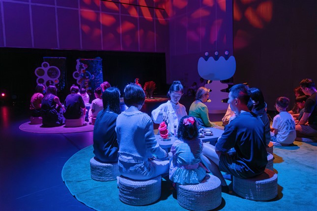 2025.10文/林宇儂 與諾文化設計創辦人圖/藍逸詩▼親子一起品茶、品故事 這是一場創新的沉浸式藝術茶會,也是一場夢的五感體驗。走進臺北表演藝術中心的那三天,鐵觀音的香氣把大小朋友牽引進一場介於夢與現實之間的旅程。這是我與長虹教育基金會在2025年合作的「吹夢茶壺:夢幻奇鏡鐵觀音茶會」,從年初開始,我們用茶故事、鏡面與色彩的堆疊,慢慢鋪展出一個關於看見與被看見的故事。夢與茶的交融 這次以鐵觀音的夢境故事為核心,經過轉化變成夢境中的冒險,以及與植物的奇幻相遇。運用劇場中沉浸式的光影變化、鐵觀音茶香的層次以及裝置藝術的共創,引導參與者放慢感官,練習用自己的角度看世界、也看自己。許多大人停在鏡前,看見被拉長、折射的自己,跟孩子一起笑了;孩子則把夢的碎片貼成似曾相識或是想像中的夢境,把「做夢」具象成能被看見的畫面。 這樣的觀看,不求答案,只求一個誠實自在的片刻;然而在茶席中,當茶湯在口中轉換層次,房間裡的光也跟著變得或迷幻或柔和,像把心事慢慢攪散。▼正在拼貼夢的孩子三件夢的裝置這次的合作我帶來了三件裝置藝術,它們與鐵觀音的故事彼此呼應:從入口的收束,到視角的放大,再到鏡面的延展,觀眾在「靠近—觀察—照見自己」的節奏裡移動。▼入口的茶山與煙霧鏡裝置•茶山(夢的入口)像山也像隧道,是進入「夢幻奇鏡」的起點與茶香來源;經過茶山與煙霧的那一刻,空氣與步伐都慢了下來。•眼鏡姐妹花與夢的畫布兩座眼鏡姐妹花大大小小的鏡面及放大鏡組成,引領觀者探索不同視角。孩子們喜歡靠近觀察變形放大的景象,也驚嘆於遠觀的「倒過來的小宇宙」。我們邀請大小參與者從「夢的碎片池」中挑選共鳴的形狀,貼於畫布上分享自己的夢,形成一件人人參與的集體創作。透過鏡片,觀眾可欣賞懸在空中,承載集體夢境的透明畫布。•三眼花(鏡面的夢中花)鏡面花瓣反射與延伸視覺,營造熟悉又陌生的夢感,也讓人與人的影像在同一朵花上相遇。▼觀眾與三眼花的互動與小茶人的共創 從年初的鐵觀音課程開始,長虹的小茶人便投入共創。我設計了一份「夢的碎片採集單」,讓孩子從回想自己印象深刻的夢,到剪裁各式夢的形狀作為拼貼的素材;有孩子剪了噩夢中的烏雲、美夢裡的櫻花與爸爸的車、冒險夢中的貓戰士等等,經過轉化及彙整,成為一系列透明多彩的夢之碎片,展演的當天,孩子也興奮地在現場告訴來參與的觀眾,這些是我們夢裡的碎片!▼透過「夢的碎片採集單」蒐集小茶人的夢境兒童的表意與參與如何落地 今年的實踐延續我對於去年吹夢茶壺的觀察與脈絡,讓孩子不只是「被看見」,而是「帶著大家看見」。現場由孩子擔任小茶人與小說書人,在沖泡與敘事之間掌握節奏;從帶位動線到泡茶之間的停留,都依孩子的經驗與感受進行。 與裝置藝術互動的情節,小茶人們也透過介紹自己的創作,建立與觀眾互動的自信,而觀眾的表意被溫柔地邀請進來:有人用話語描述杯中的香氣,有人透過貼上「夢的碎片」把心情留在畫布上。當大人與孩子在同一個節奏裡相遇,空間開始以兒童的語言呼吸,活動也更接近我們原先想像的樣子。茶與夢的餘韻 在最後一泡茶的同時,我們以茶點「夢的籤餅」讓參與者帶走一句話,像在口袋裡留住一縷茶香,而這些話語正是我和孩子對於夢的詮釋。茶會的最後,孩子扮演的鐵爺爺及說書人說到:「當你下一次喝到鐵觀音的時候,希望你會想起今天的鐵觀音茶會,還有我們一起創造的夢,當然還要記得我—鐵爺爺、鐵觀音的鐵喔!」,以及那句我很喜歡的話:「夢,不一定有答案,但請好好陪自己走一段路。」▼一起共創的小茶人與設計師第一句話已不是「請喝茶」文、圖/吳沛儒 長虹小茶人▼茶會結束後體驗到了「下班」的快樂 「從前,有位老茶人,住在雲霧繚繞的山中...」,這是我在這次茶會的開場白。從2023年開始,已經參與三次《吹夢茶壺》的我,身份從緊張盯著自己茶席的茶人,變成欣慰看著小茶人夥伴的說書人與主持人。以往的工作內容都是圍繞在準備茶席、服務客人、表演流程以及最終收場,這次則要擔起計時場控以及帶領新進小茶人的責任。 還記得在每場茶會開始前的靜心活動,一開始小茶人們還不習慣,但到了後來,小茶人們在靜心變得自覺、大方,眼神也變得堅定、專業。當在進行場佈與收場,許多時候我回過頭要提醒他們擦鏡子、放茶點心時,往往發現他們已經完成所有準備,甚至會得到他們用驕傲的眼神說著「我剛剛早就做完了~」這樣的回答,令我哭笑不得,同時也很開心他們都樂在其中且有能力勝任很多工作。▼努力了解小茶人需求的耐心考驗 在每月的培訓中,我們一起泡茶、喝茶、習茶,小茶人們常常遇到茶壺很燙、熱水壺很重、茶水不斷漏到桌上、椅子要用蒲團墊高等等的問題和狀況,在與他們分享經驗時,不禁讓我想起一開始習茶時手抖的在奉茶時說出「請喝茶」這三個字的自己,心情難以言喻。 《吹夢茶壺》一直以來都堅持由小茶人主導整場演出,第一次接觸劇場的小茶人們不免會產生緊張的情緒,引導他們時必須加倍的冷靜,外加要兼顧好自己本來的任務,可以說是充滿壓力,但很感謝三個工作日現場的老師、工作人員和志工媽媽們的合作和幫忙,讓每一場演出都順利結束!希望日後《吹夢茶壺》兒童茶會能繼續傳承下去,