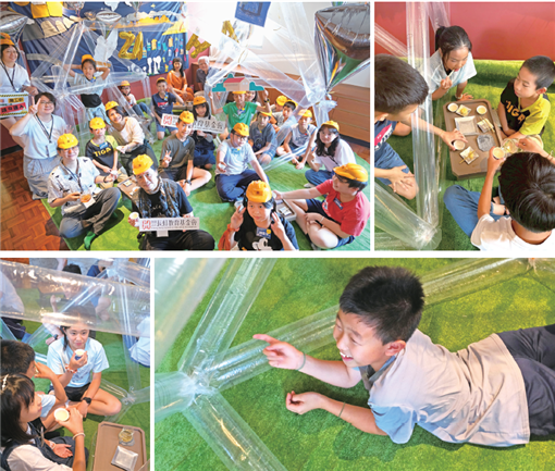 2025.10文/基金會 林沛穎圖 /基金會▼邀請基金會李文造董事長與董事長夫人參加茶會,孩子在飛行茶屋下喝茶、玩樂 基金會每年暑期的大事,便是帶孩子們邊玩邊體驗一趟建築旅程。我們曾帶孩子玩過營隊「蓋美!高第的自然村」,向西班牙的建築大師安東尼.高第學習。今年同樣以取法於大自然的建築大師「札哈.哈蒂」的建築風格作為主題,邀請方新樵老師和徐智暖老師,帶孩子觀察自然、模仿自然所創造出的流線型建築物,以豐富想像力讓建築物帶有生命,會咻咻叫?會嗡嗡響!會流動、能飛行。 從臺北市地景開始思考,有自然景緻的淡水河、小油坑、大屯山,試著模仿札哈.哈蒂深受編織地毯影響的美感元素,用色紙編織創作房子和彩色群屋的可愛景觀。能飛行的茶屋則是利用充氣塑膠管作為建材,一些氦氣球作為漂浮的方式,完成難得的大房子作品,也能在其中穿梭。我們和孩子跟著講師的解說一起討論、學習、動手做,在三天的營隊中激盪出各種好玩、充滿巧思的飛行茶屋及別開生面的茶會。向札哈.哈蒂致敬~文/徐智暖 社區規劃師、空間設計師 今年的兒童建築暑期營,試圖挑戰結合建築女蒂札哈.哈蒂的建築理念與飛行茶屋的設計。 為了向大師學習,藉由說故事「札哈.哈蒂的小祕密」來了解伊拉克籍建築師「曲線女王」哈蒂的成長背景、文化薰陶與建築養成,學學哈蒂喜歡觀察與畫畫的特質,我們帶孩子們走訪華山草原,觀察與速寫大自然曲線元素(從葉形、花形到蟲鳥…),尋找大自然的家(我們發現了高高樹上的鳥巢、蜘蛛網…),還利用色紙編織建築,感受小哈蒂對波斯地毯編織的喜愛。▼帶領孩子觀察與速寫大自然曲線元素 由於哈蒂早期在倫敦AA建築學院學習時受到俄國前衛藝術家馬列維奇解構主義的影響,我們利用一張完美的正方形色紙經過撕貼及重新拼貼後,形成各種不同的地景或建築來體會「解構」,卻意外收穫,同一幅作品在小朋友分享時卻有不同的解讀。 當然,為了讓茶屋可以「飛行」,真是絞盡腦汁,需要引導小朋友如何利用充氣棒當結構,加上氦氣球,讓茶屋「飛」起來。同時還結合環境美學,讓孩子們從台北市的空拍影片中去感受、設計飛行茶屋的基地地景;尤其從草圖構思、放圖到各種媒材拼貼完成,小朋友必須團隊合作在比他們都還要高大的大布幕上製作,然後在第三天將所有的成果展現,並且在飛行茶屋下,飲上一杯董事長夫人親泡的茶飲與香甜茶點,來一場歡樂的下午茶。 三天緊湊的課程將環境教育、建築美學,徹底融入生活當中,再加上基金會精心製作的建築學習手冊,不只是孩子們三天營隊的知識累積、更是個人的作品集,而且從營隊中可顯現每位孩子的特質:有的默默耕耘甘之如飴、有的懂得協力合作補位,有的善於發號施令執行……,能看到大家樂在其中的笑容,真好。▼孩子共同完成環境地景建構與活動的共組體驗文/方新樵 Adamas Architech & Design創辦人 本次與長虹教育基金會共同研討新型態教案,是基金會首創將茶空間硬體及茶會活動軟體兩者如何巧妙融合的小學建築暑期營。執行的過程也與以往有著不同的挑戰,在基金會同仁們和老師們及今年聰明靈巧的小朋友們共同努力下,我們共同完成一個意外的有趣的成果。 在課程上希望引導小朋友們觀察建築結構系統、建築力學的邏輯原理。並透過模組教具來親手實驗、挑戰三種不同結構系統-樑柱結構、桁架結構與懸吊結構。在邏輯系統和力學系統可行下,開放的去發現更多種可能建築樣式。期盼他們未來在生活裡看見建築或橋梁等有結構的物體,他們都能閱讀出它們是屬於哪一種建築系統。▼讓孩子學習建築結構 我看見小朋友們的吸收力和學習力是優秀的,看似很難的主題「建築結構系統」,在引導後大部分都很快可以練習系統觀念的建立。對小朋友來說難度較高的就是落實成實體一比一尺寸時,無法全然的天馬行空,要嚴謹的面對每一個尺寸的數據和材料尺寸裁切等製作過程,也包含材料的物理特性等(輕、重、軟、硬、結構點綑綁方式的力量差異等等),本次暑期營更重要是訓練到大家分組分工合作的真實體驗。第一組做出來的東西要交給第二組,第二組加工後要給第三組搭建等以此類推,每一個環節都會影響到下一組工作進度和製作時間。建築是一個很大團隊專業分工合作的大事,我相信小朋友們在這次的暑期營裡有深深感受到這個團隊分工後,各自要確認自己做的事情要確實之外,整體串聯每組的工作整合者也變得非常的重要。 在合作過程裡,會遇到非常優秀又有責任感的小朋友,也會遇到想辦法偷懶的小朋友。如何大家有心一同的為了一起能在一比一飛行茶屋內喝茶,一起努力向前,就會有美好的成果等待著我們。很開心我們這次挑戰飛行茶屋硬體和茶會軟體的美好融合,身為教學老師和設計教材的角色,也因此學習很多。謝謝基金會的邀請與共同執行,共創一個美好的夏令營體驗。▼孩子合作測量、裁切蓋茶屋的材料創造力與建築的力量文/韓芷昀 長虹志工 在升大學前的暑假,學習規劃未來也想嘗試更多的挑戰,剛好遇到媽媽公司所設立的-長虹教育基金會在招募三天建築營的小志工,決定報名展開人生第一次的志工服務。 這次的活動以著名的女性建築師札哈·哈蒂為主題,讓我了解她的作品與風格,也學習到興建建物的流程。活動中共有十六位小朋友