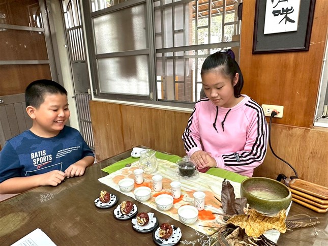 2026.4文、圖/南投縣瑞竹國小老師 林蓓伶▼認識茶具與基本茶禮儀從茶樹到茶席的教育旅程 今年參與茶教案徵選,源於我長期在課室中觀察孩子對「自然」與「生活文化」的好奇。總覺得,當孩子能透過觸摸、觀察與創作,親自走進家鄉文化,他們的學習會更有情感、更貼近生命經驗。茶文化對我們來說並不陌生,但在孩子的生活中,它似乎是一種「看得到卻理解不深」的文化符號。因此,我希望透過一套以「從茶樹到茶席」為核心的課程,帶孩子重新理解茶的生命,重新看見家鄉土地所孕育的美好。因此,我決定參與此次茶教案徵選,希望讓更多人看見孩子在茶文化教育中的成長,也為學校的食農與美感教育增添新的可能性。串起節氣、自然與茶文化 在規劃課程時,我希望這不只是一系列「做手作」、「泡茶給師長喝」的活動,而是一段從認識茶樹、理解茶的生長到表達自己美感的程。課程以節氣與校園自然素材為主軸,帶領學生從觀察身邊的季節變化出發,學習如何將自然媒材轉化成茶席的視覺語言。孩子在校園裡撿拾落葉、松果、樹枝,或是觀察茶樹葉片的大小、色澤與形狀,他們不再只是「蒐集材料」,而是在學自然、學美、學創造。 茶席規劃與茶帖設計兩個部分是課程中的重點。學生能藉由視覺構圖、象徵符號與意象轉化的練習,展現藝術與人文領域所強調的美感表達能力。在課程設計中,我加入大量的討論、示範與創作引導,孩子可以自由探索素材特性,像是「這片葉子的脈絡很像山的線條」、「松果如果當主視覺會不會太重?」、「這張茶帖如果用淡綠色會不會更符合立春?」這些問題不僅具創造性,也展現他們逐漸建立的美感思考。▼在校園中撿拾自然素材布置茶席▼孩子共創的茶席布景從被動聽課到主動創作 在前幾堂課中,許多學生雖然好奇,但仍帶著些許不確定。然而隨著實作活動愈多,他們慢慢從「怕做錯」變成「想再試試看」。例如,有個孩子一開始看到自然素材就露出困惑的表情,說:「老師,這些葉子不能用吧?」但當我示範如何利用葉子的邊緣、顏色深淺來創造層次後,他突然靈感湧現地說:「那我也可以把葉子排成像風在吹的樣子!」這種從觀察到創作的轉變,是課程中最讓我感動的部分。 孩子在規劃茶席時不再只為了交作業,而是主動安排任務、討論角色分工,展現課綱核心素養A3所強調的「規劃執行與創新應變」能力。他們會互相提醒:「我們還沒決定主題喔!」「你負責寫設計,我來找素材。」「桌面好像太滿,要不要把中間那片葉子換掉?」在這些對話中,我看見他們的自律、負責、合作精神一步步地被激發出來,也呼應了綜合活動領域的學習重點。孩子們的靈光一現 課程中發生了許多讓我印象深刻的小故事。有一次我們討論立冬主題的茶席,有位平時安靜的孩子突然提出:「冬天的冷,不是只有白色,也可能是咖啡色!」他拿出校園撿的深色落葉,說那讓他想到冬天的夜晚。這份細膩的觀察,讓全班眼睛為之一亮。 另外,有組學生在討論茶席設計時,為了讓茶席花更有意境而爭論了好久。一位學生說:「席花要像茶香一樣,淡淡的就好。」另一個則認為席花必須要「像新娘捧花」一樣又香又大束,最後他們取得折衷的方式,且在老師規定的時間內完成設計,這看似小小的爭論,卻讓孩子學會了如何溝通、協調並尊重他人的想法。 在成果茶會結束後,一位孩子主動留下來整理桌面,嘴裡喃喃地說:「終於!茶會結束了,我們應該一起幫忙清洗茶具和打掃,讓來賓知道我們是除了懂茶禮的小茶師,還懂大家要一起整理好環境。」這份責任感,不知不覺被孩子內化了。▼孩子與自己布置的茶席成果茶會上的光芒 課程的成果,我們與親職講座結合,舉辦了一場小型成果茶會。孩子們變身為小茶師,活動當天除了師長還有來賓們,孩子們雖緊張但臉上的神情卻真誠又堅定。 最令人印象深刻的,是孩子們能清楚、有條理地向家長與老師解說自己的茶席理念: 「我是以白露為主題,所以用比較透亮的葉片象徵露水。」 「這些松果代表秋天,茶帖的顏色我用橘色,讓它看起來比較有季節感。」 「這枝茶樹是我在校園看到的,它讓我想到我家旁邊的茶園。」 看著他們站在茶桌前侃侃而談,我深刻感受到孩子的美感能力不是灌輸得來,而是在一次又一次的討論與創作中自然生長。家長們也紛紛表示驚訝:「原來孩子能觀察到這麼細的地方!」、「沒想到茶席可以這麼有創意!」成果茶會不僅是展示,更是一場屬於孩子、屬於土地、屬於家庭的美好相遇。▼親職講座成果茶會看見教育的溫度與可能 這次課程得以順利完成,除了孩子們的投入外,更要感謝長虹教育基金會的教案經費補助與茶道賴靜玉老師的用心指導。正因為有大家的支持與協助,這趟從「茶樹到茶席」的教學旅程才能順利展開,也讓我有機會重新思考教育的價值與意義。 對我而言,這不僅是一份教案的完成,而是一段重新理解「教育意義」的道路。我看見孩子在自然中學習,在文化中成長,也看見自己在教學中不斷調整、嘗試、突破。孩子們在課程中的每一步探索,都提醒我:教育不是灌輸,而是陪伴;不是要求,而是開啟。美感教育也不是要孩子畫得多好、做得多精緻,而是讓孩子們能透過創作真實說出自己的感受。而茶文化教育,也不是要孩子們背誦茶的品種,而是希望茶成為孩子們了解家鄉、了解