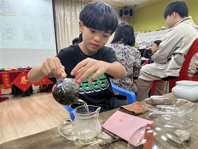 文 / 基金會副組長 林姵君 圖 / 基金會「感謝台灣這土地,讓我平安快樂真美麗!」(Kám-siā Tâi-uân tsit kuè thóo-tē, hōo guá pîng-an khuài-lo̍k, tsin bí-lē!) 融合多元族群的台灣,宗教信仰自由且極具包容力,除了最大宗的民俗信仰,也經常可見體系多元的教會,透過關懷、分享資源、社會服務及教育,來投入社區營造,瞭解並滿足鄰近住民的需求,帶來希望與支持力量,成為社區的守望者與服務者。 其中,教會與社區的最珍貴的關係就在於陪伴與認同。對基金會而言,我們同樣也期望以「茶」讓孩子找到內心安放之所,並能夠多多傳遞奉茶感恩心的意義,除了長年合作的萬華兒童服務中心以外,也積極尋找合適的公益機構來辦理茶公益營隊,我們從去年參與過《建築好好玩》到你家工作坊的團體中,延續與貴格會海山教會附設〈社團法人中華民國愛與希望協會〉的緣分,希望能透過台灣茶來認識我們所居住的、豐饒的台灣,也經由茶會多樣的面貌與美感,滋養孩子們的生活日常。▼認識不同的茶器具▼配合年節氣氛,寫小春聯字靜心▼學習辨識碧螺春、包種茶、紅茶 結業茶席上,協會的老師告訴我們,其實不只是這裡的孩子,連她身為年長者,都未曾有機會這樣好好地坐下來,品嚐一杯透過精緻的茶道儀軌所奉上的茶。這次參與茶冬令營的孩子,年齡橫跨國小3年級到國中3年級,大家在茶文化面前都是第一次體驗的新手,在有限的四堂課中,一起學習茶的基礎知識:認識茶器具、台灣的茶產地、寫小春聯的靜心活動,以及孩子們最期待的品茗及泡茶體驗,還有整個營隊的重頭戲—一起籌備結業茶會。 營隊期間我們觀察到社服孩子們出色的活動力、自制力,以及互助、傳承的美德。協會的老師與志工用心爭取資源,讓孩子們在協會一起吃飯、寫作業、遊戲,除了進行社區弱勢家庭兒童陪讀,也關懷社區長者並提供日間照顧。其中讓我們最驚訝的是孩子們的超快速反應力,既能把握短暫的下課時間玩樂,又能瞬間切換回座位、進入上課狀態。父母不在身邊的這段共學時光,孩子們得以在安全的團體中彼此依靠,年長的大哥哥大姊姊學習領導較年幼的孩子,成為師長們得力的小幫手,而團體生活中避免不了的摩擦與困境,更是高年級生們培養解決問題的「實戰演練」。▼泡茶的練習彩排▼練習向客人說明茶席 在最後一天的結業茶席前,就出現了一段讓人難忘的插曲,一位年紀較小的孩子,三天的茶課過程中都頻頻喊燙、喊苦,有時候還嚷嚷著拒絕喝茶,但在課堂中玩得開心、也沒有明顯的不滿或抗拒,甚至在各組分配茶會工作崗位時,自告奮勇要擔任最主要的小茶人,結果卻在練習時太過興奮,一時忘了規矩禮儀而被老師請到一旁規勸,因而鬧起脾氣拒絕參與正式彩排,錯過原本能擔任茶主人的機會!他氣呼呼地站在一旁看著同學如期進行彩排,大家在泡茶時有說有笑、虛心接受老師的細節指導,竟然紅了眼眶,默默躲到牆角,拒絕其他同學的關心。 正當我們有點擔心他的情緒在正式茶會前是否能緩和下來時,同桌的組長大哥哥早就細心地觀察到他的所有表情,趁著大家繼續下一組茶席的彩排時,走過去悄悄地對他說:「等等你先去當茶侶,中間可以交換當茶人,但是你要答應守規矩。」孩子破涕為笑,立刻收拾好情緒,開心地坐上茶席,也比之前多了一分謹慎穩重。這讓我們看見混齡學習的價值,年紀稍長的孩子,多了一份觀察與成熟,更懂得如何照顧他人;而年紀較小的孩子,則在被理解與陪伴中,重新找回勇氣。這個微小的瞬間,高年級生的高情商表現及展現出的互信關懷,年幼的孩子在理解與包容中重獲機會,並有了顯著的成長,最後大家一起開心圓滿地完成這人生第一次的茶會展演,至今回想起來仍令人動容。▼為客人泡茶及送點心 愛與希望協會正如其名,以愛為出發點,關懷貧困弱勢家庭,以福音陪伴走出狹隘心靈,倡導正確的人生觀並提升生活品質。這也與在基金會的茶課中必不能少的〈感謝歌〉相得益彰,我們帶領部分不熟悉台語的孩童們一起讀出對父母、師長、同儕以及天地土地的感恩心,孩子們甚至從第三天開始就已不需要老師引導與字幕,能獨立自然地唸完整首〈感謝歌〉!而協會的師長,也會在感謝歌之後帶領大家一起低頭禱告:「讓我們閉起眼睛、合起雙手,親愛的天父上帝,我們獻上感恩,感謝祢如此眷愛我們的孩子,因為有天父上帝的愛,也讓我們有能力、有智慧地來愛這群孩子,我們更看見祢為孩子們帶來許多資源,讓他們有機會在各方面多多學習,我們看見這麼多的恩典在這個地方,更知道他們是蒙愛的。也祝福長虹教育基金會,讓這些付出為他們恩上加恩、利上加利,得以服務更多有需要的孩子們。謝謝恩主,並祝福在座的每一位。禱告奉耶穌盛名,Amen。」深感這場茶公益冬令營,孩子們用自己的方式互相學習、扶持,展現出對茶文化的熱誠,讓茶席不只有茶香,也傳遞信任和成長的力量,在充滿愛與希望的祝福下,增添成長過程中一幀幀美麗的回憶。
