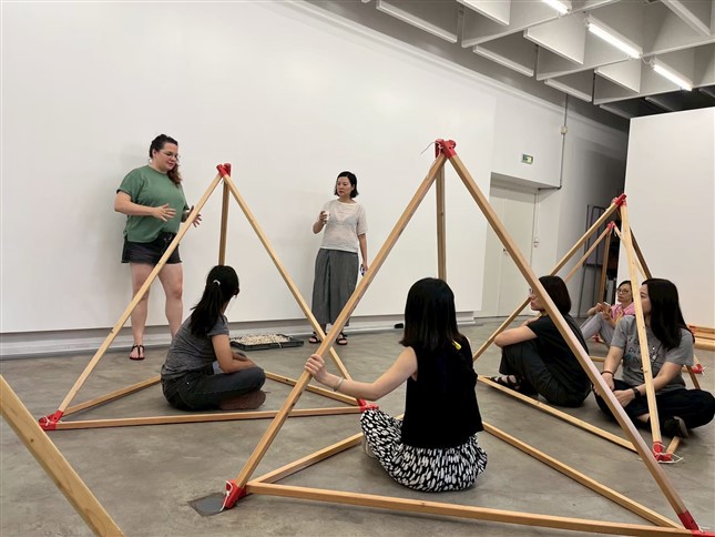 2025.10文/長虹教育基金會秘書長 吳台琪圖/基金會、臺灣博物館文教基金會、台灣現代建築學會、楊駿、劉惠芳、林瑋婷▼波爾多的皮埃爾橋,是加龍河上第一座橋 波爾多因加龍河流過此地的形狀像一眉彎月,又稱為月亮港,隨著港口而繁榮,2007年波爾多市中心老城區登錄為世界文化遺產。除了是葡萄酒知名產區、可麗露的故鄉外,事實上,這個位於法國西南部的小鎮,在建築教育及展覽,更有著國際知名的「波爾多建築中心」。 2025年7月初,基金會參與了臺灣博物館文教基金會主辦的「主題式國際博物館專業提升訓練計畫」,首次主題「兒童建築教育及策展」正是長虹教育基金會一直在做的核心項目,我與另外15個單位共同前往法國波爾多建築中心,進行為期一周的學習觀摩與交流,深入體驗法國的兒童建築教育,並實地走訪波爾多的古典與現代。▼波爾多建築中心在Entrepot Laine古蹟中,右-總策展蔡雯雯,左-臺灣博物館文教基金會 蔡孟穎 代理執行長建築+兒童=夢想 波爾多建築中心(Arc en Reve Centre d'Architecture)位在加龍河畔的古蹟中,法語的Arc是建築(architecture)、En是兒童(enfant)、Reve代表夢想,中心自1981年成立以來一直懷抱「建築遇到兒童就是一個夢想」的初衷,一開始從兒童的建築互動實驗開始,漸漸發展到公共參與,堅定地把建築普及到大眾,讓空間成為教育的一環。 波爾多建築中心2000年與建築師-雷姆·庫哈斯(Rem Koolhaas)等策展團隊,為了探討千禧年全球都市化現象,舉辦「突變Mutations」大型國際展覽,之後出版同名專書,讓波爾多建築中心揚名國際。 2002年起,多位建築大師獲普立茲克建築獎前已在中心舉辦過個人展,包括坂茂(Shigeru Ban)、迪埃貝多·弗朗西斯·凱雷(Diebedo Francis Kere)等,台灣田中央工作群及黃聲遠建築師也於此辦過國際巡迴展。波爾多建築中心始終以非營利組織的平台角色,匯聚國際建築作品,透過教育、展覽、出版等多元及實驗性的交流方式,深刻傳達「建築就是我們的日常生活」。40年淬鍊出的經典兒童建築工作坊 此次交流學習,波爾多建築中心總策展-蔡雯雯及兒童教育組長-莎拉 莫尼耶(Sara Meunier)精心規劃了5個經典兒童建築工作坊,包括「結構與物體」、「膨脹結構」、「建築與設計物品法庭」、「房子遊戲」與「間隙工作坊」,是與兒童共享感性的空間體驗。▼古蹟與簡約木構交織出空間之美▼左-兒童教育組長 莎拉帶領結構與物體工作坊結構與物體:這個工作坊將使我們能夠理解建築的所有層面。 -波爾多建築中心 「結構與物體工作坊」用簡單的材料-木條,木條兩端漆上紅色,標出結構穩定的位置,兒童教育組長-莎拉引領我們操作從線、面、三角、四邊形等結構,感受從平面到立體,還有我們與結構、空間的關係。大家要集思廣益用繩子結合限定數量的木條,做出容納1個人到所有人的木構,一起完成並走入被古蹟包圍的兩層樓高木構,木構的簡約在歷史建物中交織出空間靜謐的美。基金會也有類似的木條工作坊-綁綁屋,不同之處是帶領上的差異及基金會運用橡皮筋的特殊力學綁紮方式,我自己滿心期待未來推出綁綁屋的台法融合版,讓大家親身體驗。▼膨脹的黑色怪物下有什麼呢▼進入薄膜內的星空秘密空間膨脹結構:它提供了對空間、內部和外部的第一次敏感體驗。是一種掌握建築多維度的遊戲方式。 -波爾多建築中心 「膨脹結構工作坊」是非常有趣的充氣裝置遊戲,將常見的黑色聚乙烯薄膜變身空間體驗,一開始不會發現它的存在,甚至還有小朋友以為它是被丟在旁邊的垃圾袋。莎拉帶著我們一步一步從平面、踏上平面,再用充氣機將薄膜打氣,這是我們最期待的時刻,薄膜漸漸膨脹成一個超大的黑色怪物,一起蹲進薄膜下,最後20多個大人鑽入神秘薄膜中央,第一眼,看見滿天星斗,驚呼連連,莎拉說:這是多年來留下的許多小破洞,並沒有去修補,這是許多孩子遊戲累積出來的意外星空。中心為怕黑的孩子,特地在中央黏合一條細長的半透明薄膜,透著微光,就不怕了,還更好玩。▼擺脫主觀想法為指定建物辯護建築與設計物品法庭:從了解作品(設計或建築)開始,在初步檢視檔案之後,要求各團隊在議程上表達專案的正面與反面觀點,並據理力爭。這是一項品味與批判性思考的練習。 -波爾多建築中心 這是大家最忐忑的工作坊,辯論讓人壓力陡升,但實際上只是角色扮演,各組被指定物件-建築物或椅子、指定立場-正方或反方,當下必須拋開自己的主觀意見,超越喜歡或不喜歡,依照提供的物件檔案資料及引導項目,提出客觀論述,在場所有人都必須投票支持某一方。對我而言,是一個嶄新的體驗,破除自己的思考桎梏,練習舒適圈以外的多樣思維,是值得多加推廣的工作坊。 而接下來的2個工作坊,建築中心讓孩子去發現:建築、生活方式從來都不是自己一個人的事,而是與我們周遭人事物息息相關。房子遊戲:目的是幫助兒童和青少年發現,建造房屋不只是獨立行為,它必然涉及與土地和鄰里問題,及建造關係的遊戲。-波爾多建築中心 「房子遊戲工作坊」邀請大家共創地域。讓大家思考何謂「城市」,再觀察眼前地板上隨意黏貼的橘線,這線條可以是河、道路或山稜線,沒有定義,大家依序拿著木頭小房子隨興放地上,藉由每個人的行動,慢慢形成城鎮風貌,道路及空間運用就發展起來。下一階段,由莎拉指派秘密任務:各組在限定但不同大小區域