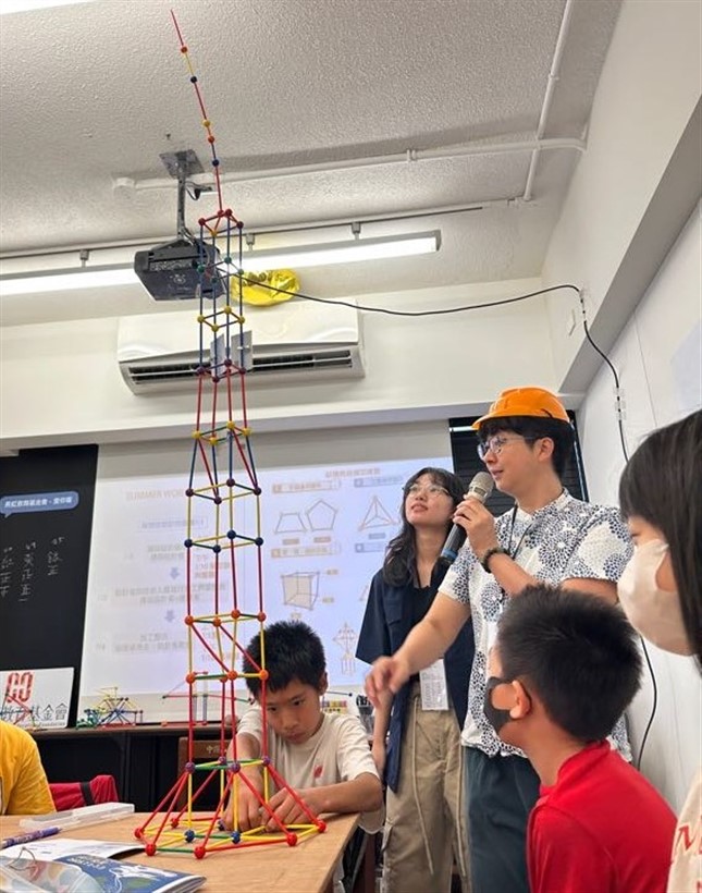 2025.10文/基金會 林沛穎圖 /基金會▼邀請基金會李文造董事長與董事長夫人參加茶會,孩子在飛行茶屋下喝茶、玩樂 基金會每年暑期的大事,便是帶孩子們邊玩邊體驗一趟建築旅程。我們曾帶孩子玩過營隊「蓋美!高第的自然村」,向西班牙的建築大師安東尼.高第學習。今年同樣以取法於大自然的建築大師「札哈.哈蒂」的建築風格作為主題,邀請方新樵老師和徐智暖老師,帶孩子觀察自然、模仿自然所創造出的流線型建築物,以豐富想像力讓建築物帶有生命,會咻咻叫?會嗡嗡響!會流動、能飛行。 從臺北市地景開始思考,有自然景緻的淡水河、小油坑、大屯山,試著模仿札哈.哈蒂深受編織地毯影響的美感元素,用色紙編織創作房子和彩色群屋的可愛景觀。能飛行的茶屋則是利用充氣塑膠管作為建材,一些氦氣球作為漂浮的方式,完成難得的大房子作品,也能在其中穿梭。我們和孩子跟著講師的解說一起討論、學習、動手做,在三天的營隊中激盪出各種好玩、充滿巧思的飛行茶屋及別開生面的茶會。向札哈.哈蒂致敬~文/徐智暖 社區規劃師、空間設計師 今年的兒童建築暑期營,試圖挑戰結合建築女蒂札哈.哈蒂的建築理念與飛行茶屋的設計。 為了向大師學習,藉由說故事「札哈.哈蒂的小祕密」來了解伊拉克籍建築師「曲線女王」哈蒂的成長背景、文化薰陶與建築養成,學學哈蒂喜歡觀察與畫畫的特質,我們帶孩子們走訪華山草原,觀察與速寫大自然曲線元素(從葉形、花形到蟲鳥…),尋找大自然的家(我們發現了高高樹上的鳥巢、蜘蛛網…),還利用色紙編織建築,感受小哈蒂對波斯地毯編織的喜愛。▼帶領孩子觀察與速寫大自然曲線元素 由於哈蒂早期在倫敦AA建築學院學習時受到俄國前衛藝術家馬列維奇解構主義的影響,我們利用一張完美的正方形色紙經過撕貼及重新拼貼後,形成各種不同的地景或建築來體會「解構」,卻意外收穫,同一幅作品在小朋友分享時卻有不同的解讀。 當然,為了讓茶屋可以「飛行」,真是絞盡腦汁,需要引導小朋友如何利用充氣棒當結構,加上氦氣球,讓茶屋「飛」起來。同時還結合環境美學,讓孩子們從台北市的空拍影片中去感受、設計飛行茶屋的基地地景;尤其從草圖構思、放圖到各種媒材拼貼完成,小朋友必須團隊合作在比他們都還要高大的大布幕上製作,然後在第三天將所有的成果展現,並且在飛行茶屋下,飲上一杯董事長夫人親泡的茶飲與香甜茶點,來一場歡樂的下午茶。 三天緊湊的課程將環境教育、建築美學,徹底融入生活當中,再加上基金會精心製作的建築學習手冊,不只是孩子們三天營隊的知識累積、更是個人的作品集,而且從營隊中可顯現每位孩子的特質:有的默默耕耘甘之如飴、有的懂得協力合作補位,有的善於發號施令執行……,能看到大家樂在其中的笑容,真好。▼孩子共同完成環境地景建構與活動的共組體驗文/方新樵 Adamas Architech & Design創辦人 本次與長虹教育基金會共同研討新型態教案,是基金會首創將茶空間硬體及茶會活動軟體兩者如何巧妙融合的小學建築暑期營。執行的過程也與以往有著不同的挑戰,在基金會同仁們和老師們及今年聰明靈巧的小朋友們共同努力下,我們共同完成一個意外的有趣的成果。 在課程上希望引導小朋友們觀察建築結構系統、建築力學的邏輯原理。並透過模組教具來親手實驗、挑戰三種不同結構系統-樑柱結構、桁架結構與懸吊結構。在邏輯系統和力學系統可行下,開放的去發現更多種可能建築樣式。期盼他們未來在生活裡看見建築或橋梁等有結構的物體,他們都能閱讀出它們是屬於哪一種建築系統。▼讓孩子學習建築結構 我看見小朋友們的吸收力和學習力是優秀的,看似很難的主題「建築結構系統」,在引導後大部分都很快可以練習系統觀念的建立。對小朋友來說難度較高的就是落實成實體一比一尺寸時,無法全然的天馬行空,要嚴謹的面對每一個尺寸的數據和材料尺寸裁切等製作過程,也包含材料的物理特性等(輕、重、軟、硬、結構點綑綁方式的力量差異等等),本次暑期營更重要是訓練到大家分組分工合作的真實體驗。第一組做出來的東西要交給第二組,第二組加工後要給第三組搭建等以此類推,每一個環節都會影響到下一組工作進度和製作時間。建築是一個很大團隊專業分工合作的大事,我相信小朋友們在這次的暑期營裡有深深感受到這個團隊分工後,各自要確認自己做的事情要確實之外,整體串聯每組的工作整合者也變得非常的重要。 在合作過程裡,會遇到非常優秀又有責任感的小朋友,也會遇到想辦法偷懶的小朋友。如何大家有心一同的為了一起能在一比一飛行茶屋內喝茶,一起努力向前,就會有美好的成果等待著我們。很開心我們這次挑戰飛行茶屋硬體和茶會軟體的美好融合,身為教學老師和設計教材的角色,也因此學習很多。謝謝基金會的邀請與共同執行,共創一個美好的夏令營體驗。▼孩子合作測量、裁切蓋茶屋的材料創造力與建築的力量文/韓芷昀 長虹志工 在升大學前的暑假,學習規劃未來也想嘗試更多的挑戰,剛好遇到媽媽公司所設立的-長虹教育基金會在招募三天建築營的小志工,決定報名展開人生第一次的志工服務。 這次的活動以著名的女性建築師札哈·哈蒂為主題,讓我了解她的作品與風格,也學習到興建建物的流程。活動中共有十六位小朋友